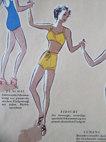 Es wird z. B. behauptet, daß der Bikini erst 1946, durch den französischen Maschinenbauingenieur, Louis Réard, der Weltöffentlichkeit vorgeführt wurde und dadurch in Mode kam. Die Bezeichnung Bikini soll dem Bikini-Atoll geschuldet sein. Es wird dann auch kurz darauf hingewiesen, daß es bereits im alten Griechenland diesen Zweiteiler gab. Der ursprüngliche deutsche (Wieder-)Erfinder, Valentin Lehr, aus Freiburg im Breisgau, wird in einem Nebensatz erwähnt. Doch es wird sofort darauf hingewiesen, daß der Zweiteiler in den USA, in den 20iger Jahren des 20. Jahrhunderts, weiter entwickelt wurde und als "Palm Beach Combination" herauskam. (Als Schelm fällt einem da unwillkürlich der Patentraub, der bereits nach dem ersten Weltkrieg, durch die Alliierten vollzogen wurde, ein.) Selbstverständlich, und dies darf nicht fehlen, war der Zweiteiler während der 30iger und 40iger Jahre des 20. Jahrhunderts in Deutschland verpönt. Doch war dem wirklich so? Wir kommen später nochmals darauf zurück. Viel mehr andere Infos zum