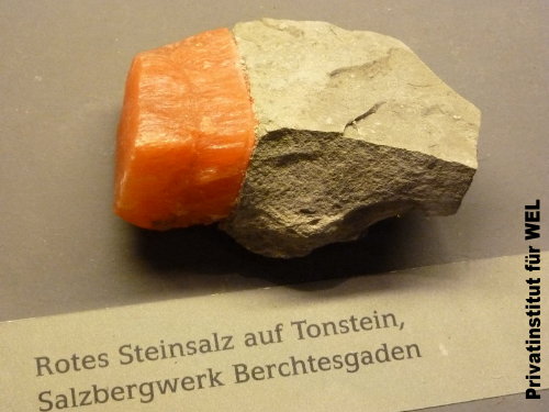 Perfekt getrenntes Rotes Steinsalz aus dem Salzbergwerk Berchtesgaden. Diese perfekte Trennung und Schichtbildung ist nur durch Gefrierung möglich. Es gibt allerdings einige zu