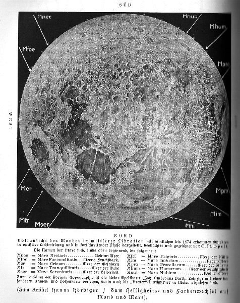 Und von den drei großen Wallebenen: Maginus, Clavius und Longomontanus am Monde (50-60° südl. Breiten und 5-20° östl. Länge) hat schon Mädler gesagt: "Wenn es einst gelingen sollte, diese selenogenetischen Hieroglyphen zu deuten, so wäre ein großer Fortschritt in der Physik der Himmelskörper gewonnen!" Wir haben aber aus der uferlosen Eisozeannatur des Mondes nicht nur diese drei Hieroglyphen - sondern die ganze Mondoberfläche und die Herkunft des Mondes überhaupt, einheitlich gedeutet und - eine ganz neue Kosmogonie hat sich uns aus dieser Monddeutung von selbst aufgedrängt. Somit hat Mädler mit seiner Ahnung auch recht behalten. Natürlich