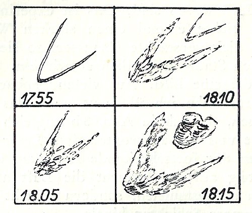 Wir sehen, daß uns die Sommermonate, besonders der Juni und Juli, die größten und eindrucksvollsten Grobeiseinschüsse bringen. ![]() Abb. 2.