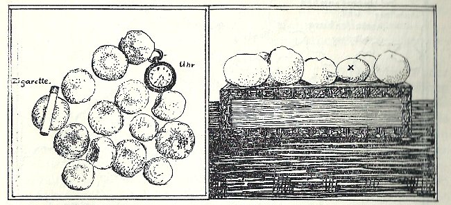 Erbsengröße bis zur Größe von Orangen oder selbst