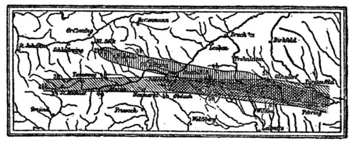 Streifen fällt, die dem Gewitterzuge parallel verlaufen, aber viel