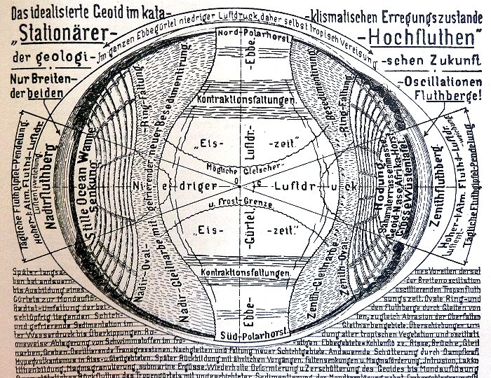 "Alle Erscheinungen, Vorgänge und Bildungen, die zur heutigen Gestaltung der Erdoberfläche geführt haben, leitet die alte geologische Schule von der Abkühlung und allmählichen Zusammenziehung der Erdkruste ab." .... (1) "Hanns Hörbiger hingegen