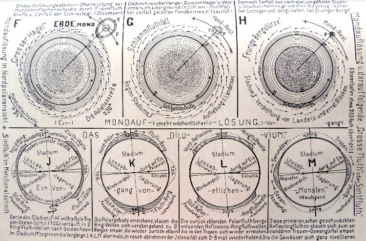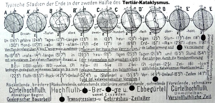 Anmerkungen: (1) Buch "Eingriffe aus dem Kosmos" von Rudolf Elmayer von Vestenbrugg, S. 23-30, Jahrg. 1977, Hermann Bauer Verlag KG - Freiburg i. Br.) (2) Buch "Hörbiger-Fauth Glazialkosmogonie", S. 455-462, Jahrg. 1925, R. Voigtländers Verlag-Leipzig (3) "Schlüssel zum Weltgeschehen", Rundschau, S. 107, Jahrg. 1928, R. Voigtländers Verlag-Leipzig (4) Buch "Hörbiger-Fauth Glazialkosmogonie", S. 381, 1925, R.Voigtländers Verlag (5) Buch "Eis - ein Weltenbaustoff", Dr. e. h. Heinrich Vogt, S. 127-128, Jahrg. 1928, R. Voigtländers Verlag-Leipzig (6) Buch "Hörbiger-Fauth Glazialkosmogonie", S. 370-371, Jahrg. 1925, R. Voigtländers Verlag-Leipzig (7) Buch "Hörbiger-Fauth Glazialkosmogonie", S.342, Jahrg. 1925, R. Voigtländers Verlag-Leipzig |